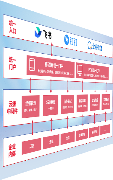 对协作平台提供支持服务,,,支持企业应用与协作平台对接,,,包含组织同步、、、、消息集成、、、、待办集成等。。。支持目前主流的协作平台:钉钉、、、企微和飞书。。。。
